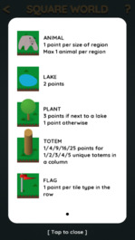 In Square Worlds you must optimally place tiles into a 5x5 grid to earn the most points. Each type of tile scores points in a different way, making for a rich board game-esque experience. Once you know your way around the first game mode, there are two additional modes to unlock.
